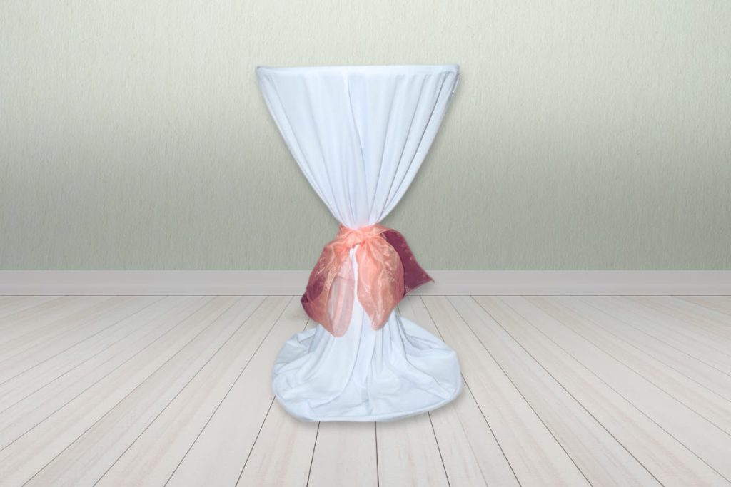 Meja Bar Cover Warna : Putih Bahan : Kaki Stainless Panjang: – cm Tinggi : 100 cm Lebar Diameter :